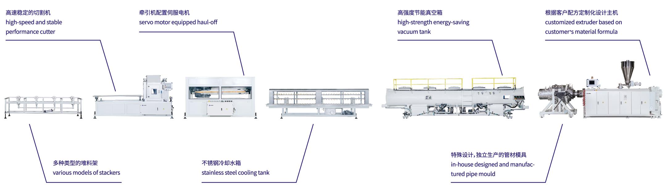 -管材的真空冷却定径箱根据不同管径范围要求配备不同数量及功率的真空泵和水泵